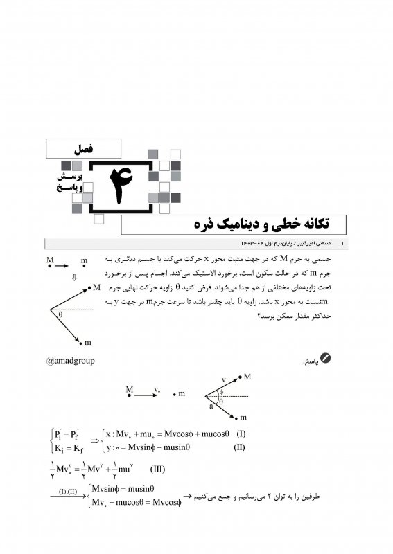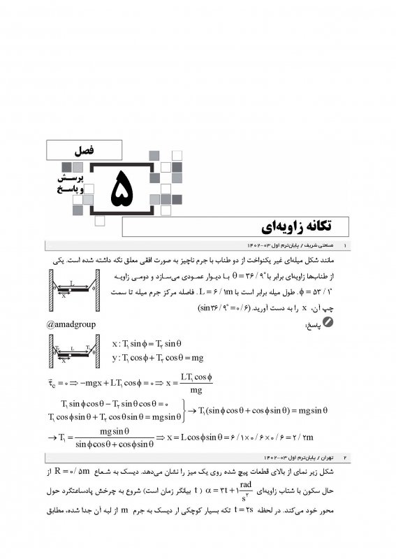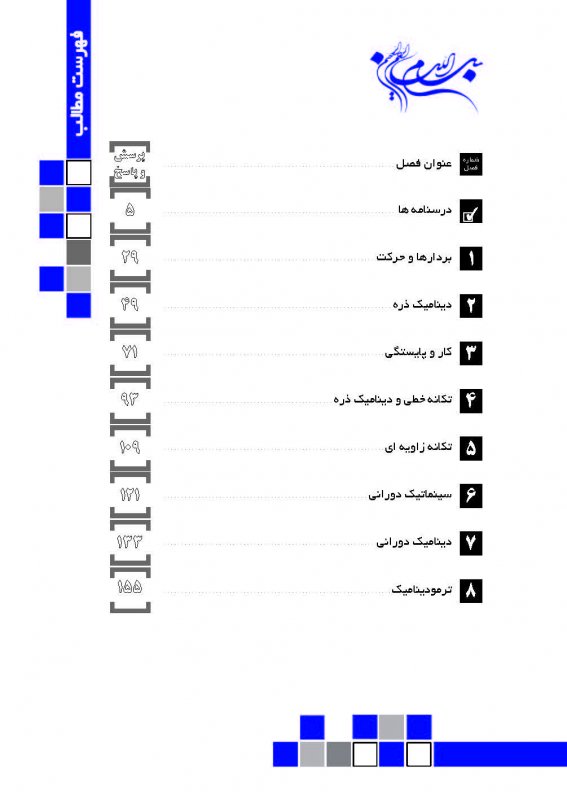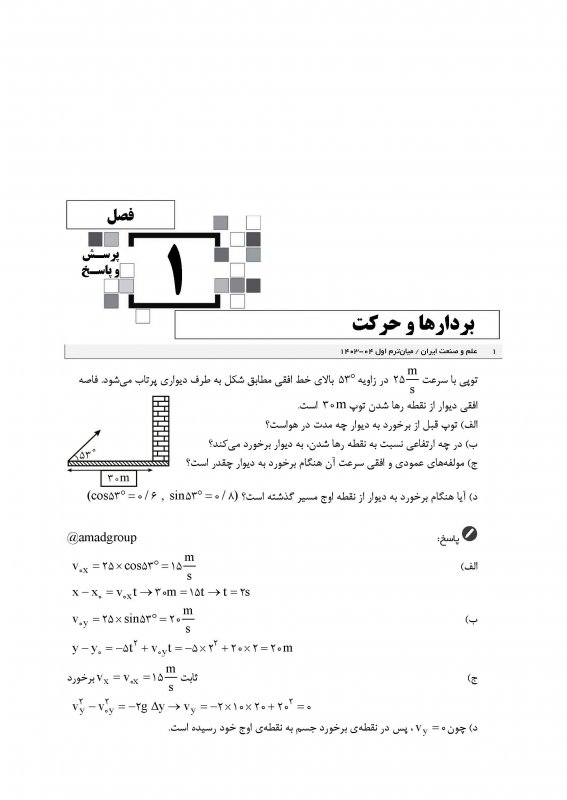 اين كتاب در قطع وزيری، 160 صفحه، قيمت 4000000 ريال دارای 8 فصل همراه با درسنامه رنگی، شامل پرسش‌ها و پاسخهای درس فيزيك پايه 1 دانشگاههای سراسری از جمله تهران، صنعتی اميركبير، صنعتی شريف، صنعتی خواجه نصير الدين طوسی و علم و صنعت ايران می‌باشد كه در برگيرنده امتحانات پايان‌ترم و ميان‌ترم است. فصل های بردار و حركت، ديناميك ذره، كار و پايستگی انرژی، تكانه خطی و ديناميك ذره، تكانه زاويه ای، سينماتيك دورانی، ديناميك دورانی و ترموديناميك در كتاب درج شده اند.